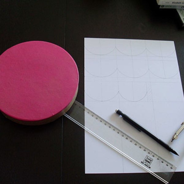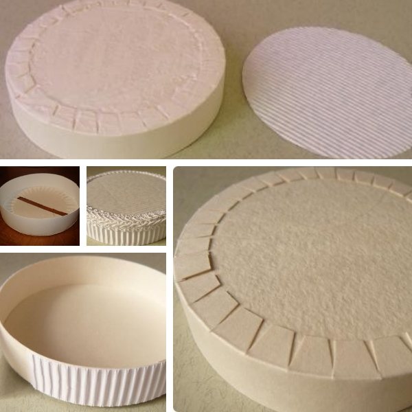 - По внутренней стороне крышки бигуют полоски на расстоянии примерно 1,5 см друг от друга. Это нужно для создания красивого изгиба.