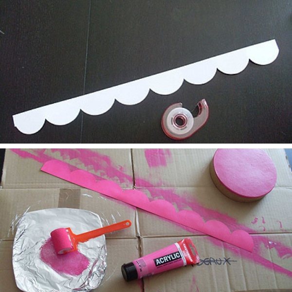 После того, как фигура будет вырезана, необходимо сложить ее по линиям сгиба и края закрепить скотчем. Всю конструкцию можно обтянуть тканью или так же оклеить бумагой. Задекорировать короб можно кружевами или бантами. В общем, вашей фантазии будет, где разгуляться.