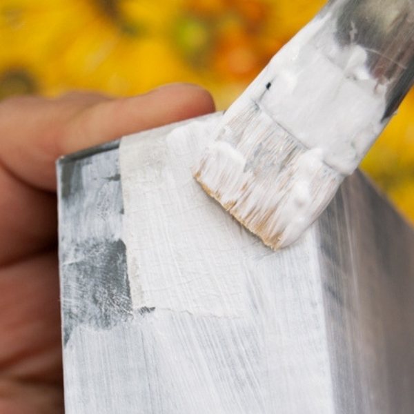 - Покрыть все основание и крышку коробки акриловым грунтом.