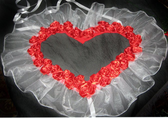 Все же лучше сделать своими руками ленты более оригинальными, необычными. Например, закрепить их не параллельно друг к другу, а расположить так, чтобы они имели форму ромба, квадрата, треугольника. А для того чтобы украшение из них стало еще более необычным, его декорируют цветочками или бантиками. Чтобы картина выглядела органично, цветы к лентам прикрепляют заранее, чтобы потом уже готовое украшение прикрепить на машину.