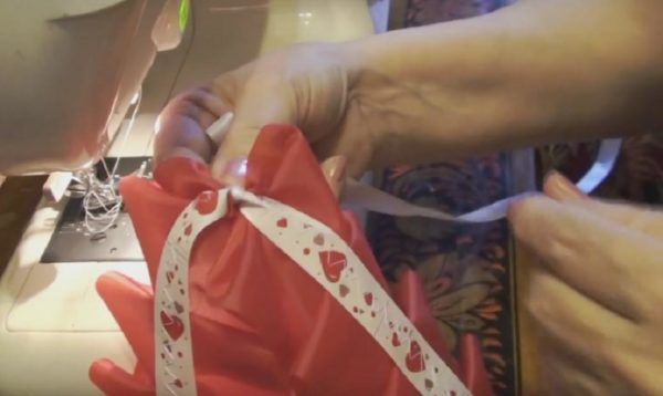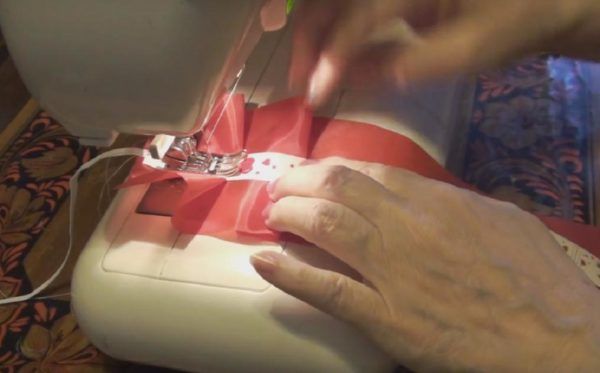 Складывать и пришивать продолжают до тех пор, пока не дойдут до середины декоративной ленты. Там необходимо изменить порядок сворачивания и загибать волны от себя. После этого продолжают также шить и дальше, пока до конца ленты не останется 3–4 см, в которые необходимо приложить резинку и скрепить всю конструкцию.