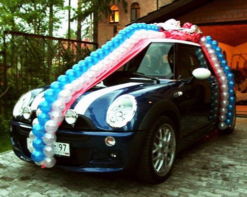 На сегодняшний день разнообразие цветов и выбор самых интересных форм шаров просто зашкаливает. Лучше всего для украшения свадебной машины шарами подойдут качественные шары, так как машина будет ехать и при трении с воздухом они могут запросто лопнуть. Шары можно прикрепить на поверхность машины. Можно сделать по – разному самое главное, чтобы шары не мешали водителю следить за положение на дороге. Не рекомендуется вешать большое количество шаров на одну сторону машины – это далеко не безопасно.#Букеты невесты, какие цветы принесут удачу в семейной жизни?#