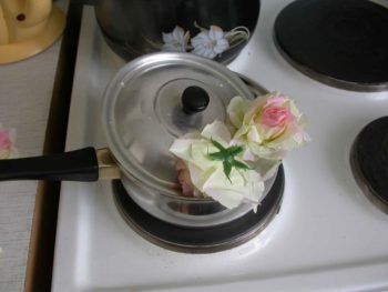 Достаточно положить нужные цветы на крышку кастрюли, в которой кипит вода.