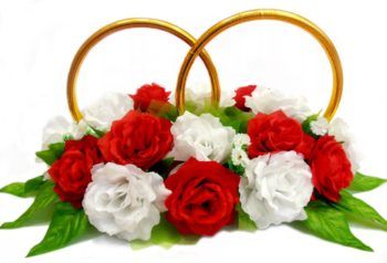 Свадебные кольца чаще всего размещают на крышах автомобилей, но без дополнительного декора они смотрятся угрюмо и не гармонично. Их часто оснащают живыми цветами, они создают романтическую обстановку и придают композиции нежности.