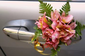 Для надежности, перед тем как поехать проверьте свои украшения на прочность. Убедитесь, что все закреплено надежно и ничего не отвалится на ходу. Крепить к ручке машины свадебное украшение надо хорошо, для этого сама конструкция украшения должна предусматривать крепление выдерживающее нагрузки.