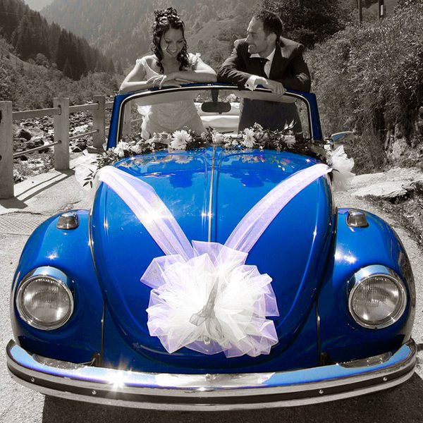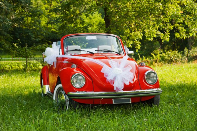 Крупные фирмы, помимо проката машины, могут предложить вам напрокат и украшения. Это удобно в том плане, что вам самим не придется украшать авто, и надобность покупать декор на один день тоже отпадет.