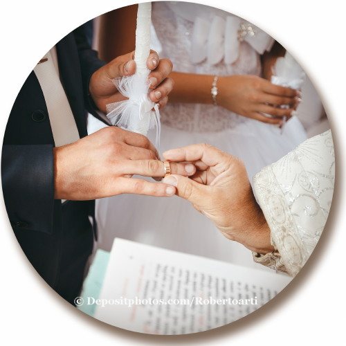 Обычно жених первым дает согласие взять девушку в жены, поэтому он первым надевает кольцо на палец невесты. В отличие от запада, где обручальные колечки носят на левой руке, у нас принято надевать его на безымянный палец правой руки. Этот палец управляется Солнцем и символизирует супругов.