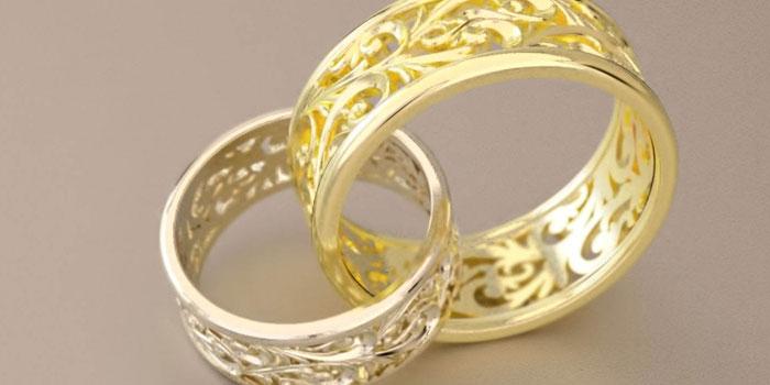 Часто в перстнях используется одновременно серебро и золото. В таком случае невесте предназначается серебряный перстень с золотой центральной вставкой, а жениху, наоборот, золотой с серебряной сердцевиной.
