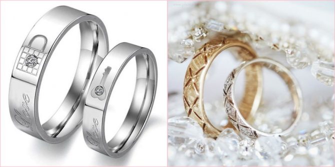 Сейчас священники не так строго относятся к соблюдению правила о разных металлах, и при желании вы можете выбрать одинаковые украшения, золотые или серебряные.
