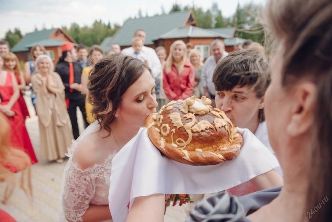 Неизменная традиция – откусить кусочек каравая. Кто больше откусит, тот и будет главным в семье.