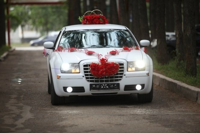Машины свадебного кортежа узнают издали. Они едут украшенные и сигналят. Пышно декорируется только первый автомобиль, в котором едут молодожены. Остальные менее нарядные. Для украшения используют кольца, цветы, ленты, шары, наклейки на номерные знаки, куклы или мягкие игрушки, изображающие жениха и невесту. Можете подсмотреть украшения для свадебной машины и оригинальные идеи для свадебных колец на автомобиль