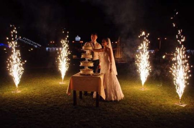 Торт выносят в кульминационный момент вечера, когда горячее уже никто не ест, гости сыты, а свадебное торжество подходит к завершению.