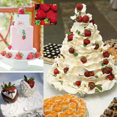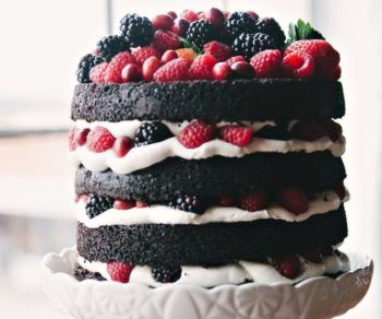 Отличный декор для открытых свадебных десертов получается из сочных ягод и фруктов, которые яркой россыпью размещаются на белоснежной или кремовой поверхности бисквитных коржей.