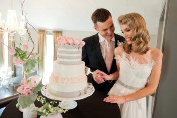 - первый вариант – классический. В этом случае продажей занимаются сами молодожёны. Начинается традиция с совместного разрезания торта и выбора себе самого лучшего первого кусочка. Обычно начинают с верхнего яруса. Невеста держит нож, а жених придерживает возлюбленную за руку. Его рука легко ложится поверх руки невесты. После первого кусочка, который традиционно остаётся у молодых, следующие расхваливаются молодожёнами и предлагаются на продажу гостям, а жених в добавку к торту предлагает рюмочку коньяку;