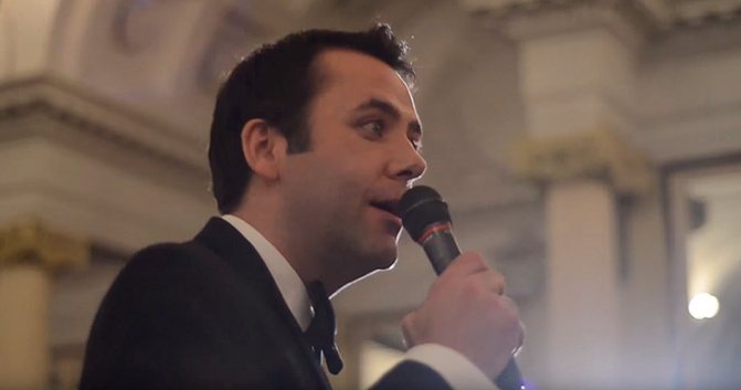 На видео конкретный пример того, как ведущий мастерски сопровождает вынос десерта на торжестве:
