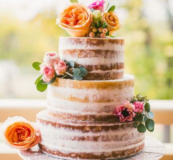 Для классической нежной свадьбы в романтическом стиле идеально подходит открытый торт с бело-розовыми цветами вишни, яблони, ломтиками фруктов в карамельной глазури, свадьбу в стиле «ретро» замечательно дополнит свадебный «голый торт» с цветами в виде разноцветных роз и шариками вкусной карамели.