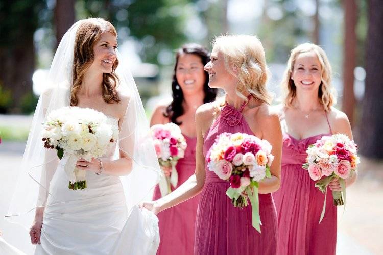 Есть примета и на счёт предпочтительных оттенков свадебных цветов свидетелей – в идеале это розовый или голубой наряд. Категорически отвергается только чёрный и белый. Впрочем, это правило не работает если свадьба тематическая. В этом случае, цветовую гамму задают молодожёны.