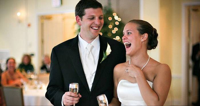 Тосты для молодоженов свидетели должны придумать такие, чтобы они запомнились всем. Поздравления должны быть продуманы заранее и тщательно отрепетированы. Лучше, если тост будет в стихотворной форме – это придаст случаю большей торжественности. Но красивая проза тоже будет отлично смотреться по видео, которое с удовольствием много раз посмотрится молодыми после многих лет супружеской жизни.