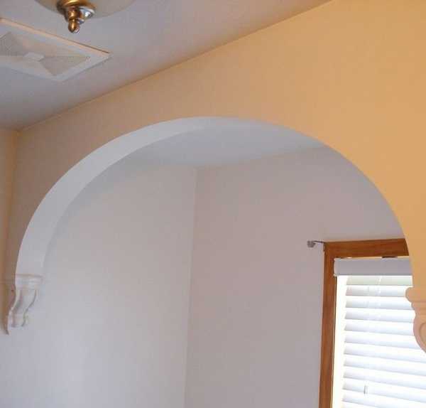 По своду арки крепится уголок, все шпаклюется Шпаклевка позволяет скрыть все огрехи
