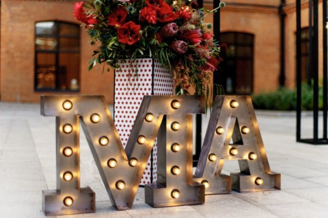 Торжество Анастасии и Мирослава сочетает в себе урбанистический стиль и вечную классику. За основу концепции они взяли ретро-комиксы и фильмы о супергероях. В качестве площадки был выбран лофт, в центре которого и установили конструкцию, сделанную на заказ. Рядом поставили вазы и инициалы молодоженов.