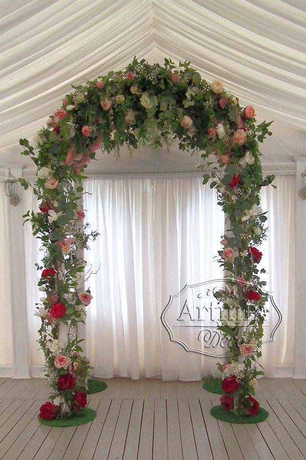Роскошно и очень нежно смотрятся арки, украшенные живыми цветами по всему своду. Они отлично подойдут для оформления торжества в стиле классицизм, ампир, цветовой свадьбы и станут великолепным фоном для фотографий.