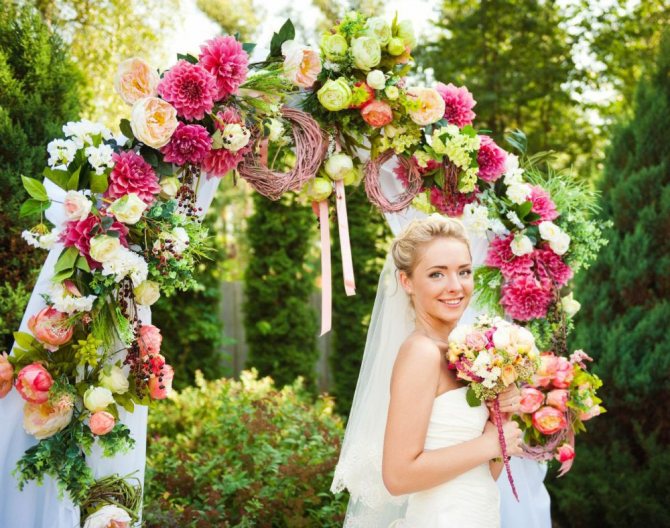 Эффектные свадебные арки из цветов используют такие композиции, как: