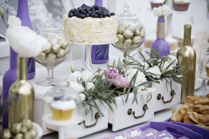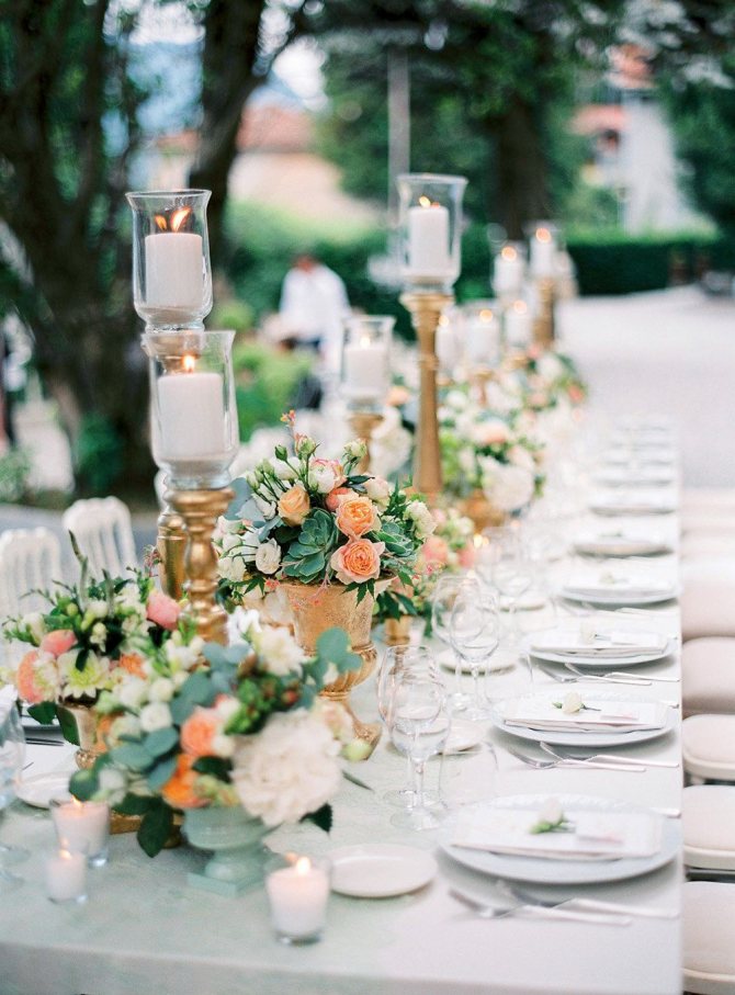 Благодаря этому все будет выглядеть, как композиция из живых цветов. На стол жениха и невесты и на столы для гостей необходимо составлять букеты исключительно из натуральных цветов.