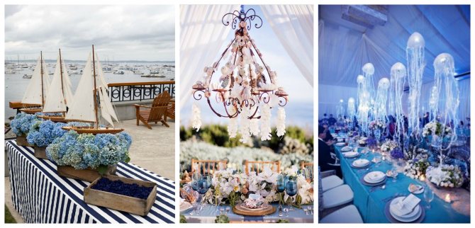 Морскую атмосферу можно воссоздать не только на открытом воздухе, но и в закрытом помещении. При помощи световых эффектов «морское дно» получится очень эффектно: