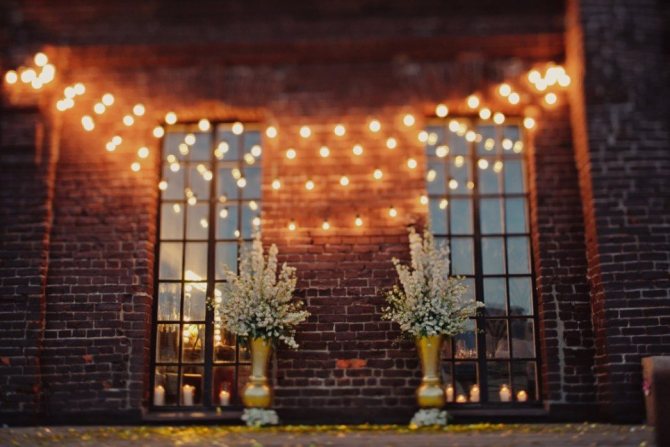 - Светильники или подсвечники геометрической формы, закрепленные в верхней части арки.