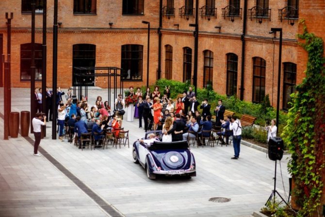 Банкетный зал, оформленный в светлых тонах, лишенный «лишних» деталей подчеркнёт элегантность брачующихся.