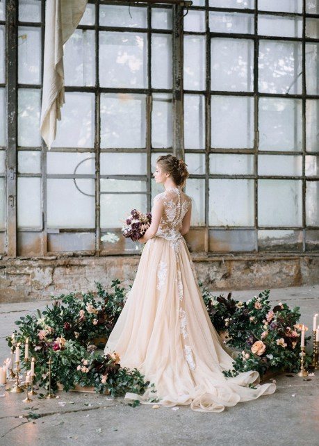 Англиканская церковь Святого Андрея со своими башнями и барельефами стала основой для арки на этой стилизованной съемке. Кирпичная арка 1880-х годов, увитая плющом, придала обстановке нотку аристократической классики. Посмотрите, какая замечательная весенняя зелено-оранжевая асимметричная цветочная арка получилась у ребят!