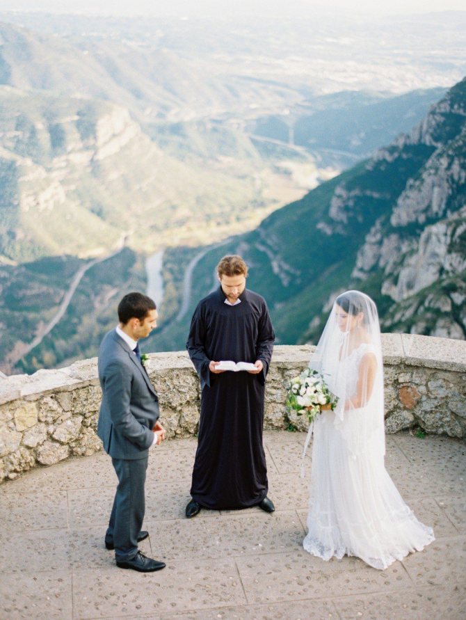 Что может быть романтичнее, чем венчание на уровне облаков? Только горы, чистый воздух, тишина и неповторимое чувство спокойствия и гармонии. Именно такой и была церемония Тамары и Алекса в Испании: у подножья монастыря, где роль свадебной арки с успехом исполнил горный массив.