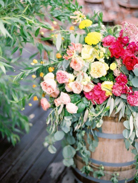 Выбор цветов зависит от сезона. Например, зимой флористы рекомендуют собирать композиции из роз контрастных оттенков; летом акцентировать внимание на полевых цветах и пионах; осенью цветочные композиции лучше выдерживать в желто-оранжевой гамме, дополнять листьями; весной для оформления подойдут тюльпаны и нарциссы.