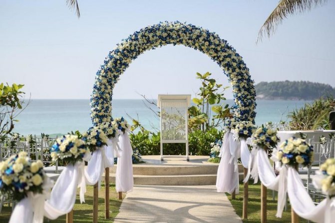 - Дугообразные (подковообразные, полукруглые) арки. Считается, что подобная форма символизирует освящение брака высшими силами, а также привлекает удачу, счастье и божественное покровительство.