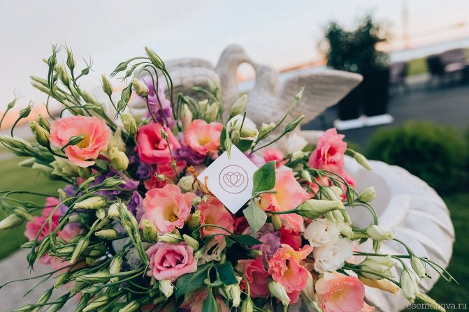 Букет эустом, подаренный женихом, говорит о восхищении будущей супругой, ее утонченности и особенности. Если к эустоме в свадебном букете будет добавлена роза, то композиция станет олицетворением взаимной любви и верности.