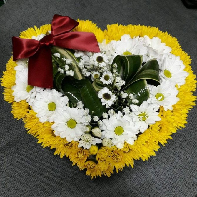 - Сердце из хризантем. Осталось только найти красивую коробку и подарочную ленту;