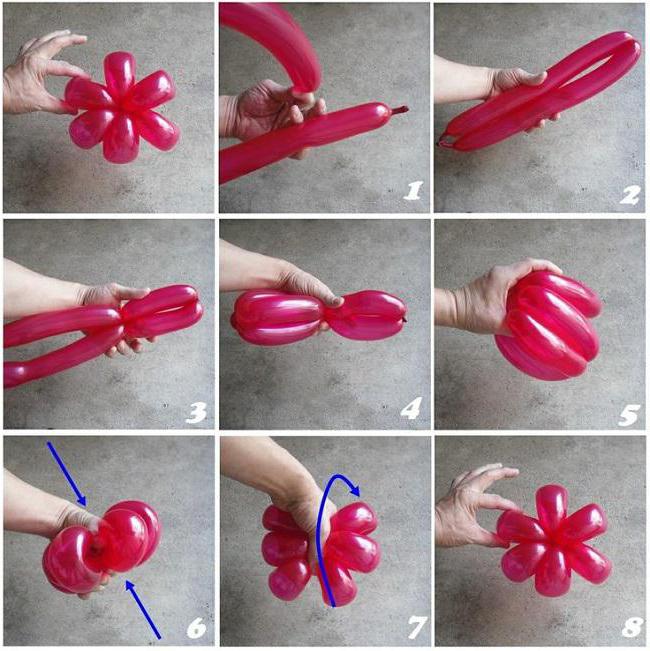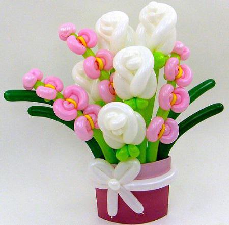 Согласно первой технологии цветы делаются из обычных шариков, которые просто связываются друг с другом. С помощью второго способа можно сделать более оригинальные композиции. Но здесь вся сложность заключается в правильной скрутке специальных шариков. Не обязательно использовать какой-то один из способов, они прекрасно комбинируются друг с другом.