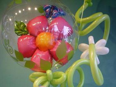 Если хотите удивить необычными букетными композициями, то дополнительно сделайте из шаров бантик или бусы. Также очень красиво смотрятся цветы в надувных корзинах. А вот точно сразить наповал поможет шар в шаре! Вряд ли кто-то останется равнодушным к такому произведению искусства.