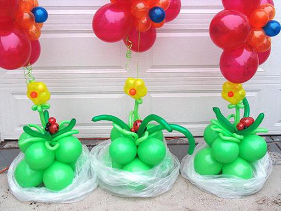 Чтобы украсить праздник, понадобится достаточно большое количество шаров, большинство из которых собирают в гирлянды или используют для сооружения арки, под которой проводится фотосессия. Но и необычные букеты станут удивительным украшением, способным создать и поддержать атмосферу веселья.