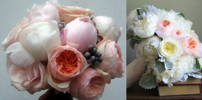Сегодня в России можно увидеть только 16 сортов пионовидной розы, на самом деле их существует более тридцати разновидностей. Но в букете невесты используются самые яркие и пышные розы.