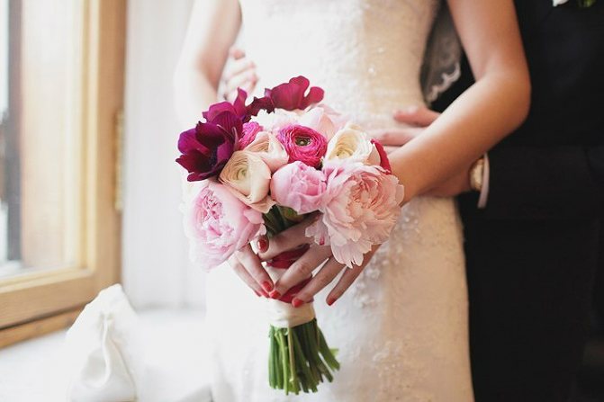 Важно, чтобы букет гармонировал не только с платьем невесты, но и с бутоньеркой жениха. Так же при выборе цветов нужно учитывать декор, который будет использован для церемонии
