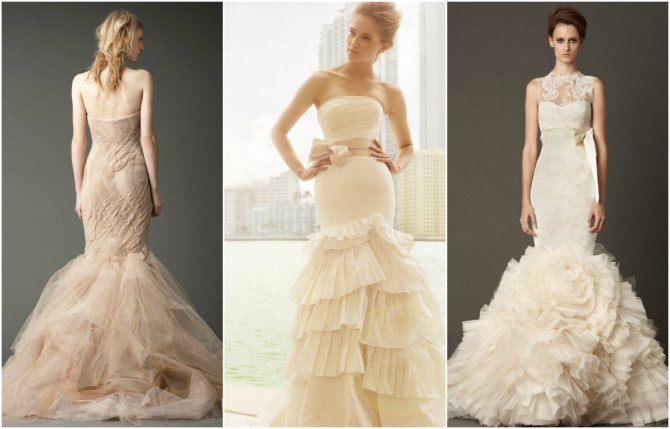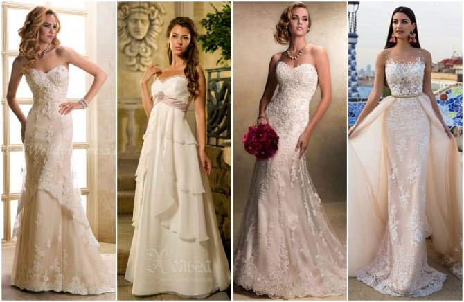 Айвори является универсальным цветом и при выборе фасона нужно учитывать в первую очередь особенности фигуры и внешности, но никак не опираться на тон платья.