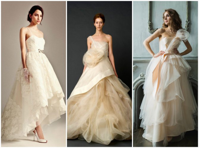 Свадебное платье благородного цвета айвори шьется в абсолютно всех вариациях. Выбор фасона зависит от ваших предпочтений, места и времени проведения бракосочетания, особенностей силуэта, роста и других нюансов.\