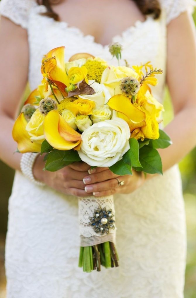 Большой популярностью у невест пользуются монобукеты. Соло хорошо хорошо будут смотреться любые крупные цветы, оформленные большим количеством зелени и различными вставками.