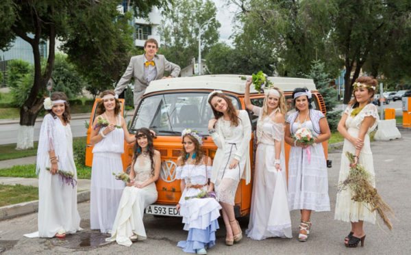 Наиболее нетипичной церемонией бракосочетания можно по праву считать свадьбу «Бохо». Уверены, не все из вас слышали о таком направлении, а если и слышали, то имеют размытое представление. Если это так, тогда мы попробуем сформировать для Вас максимально точную «картинку» такой свадьбы. На самом деле ничего мудреного в свадьбе «Бохо» нет. Этот стиль подразумевает гармоничное сочетание характерных признаков различных культур: цыганской, хиппи, славянского этноса
