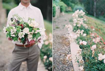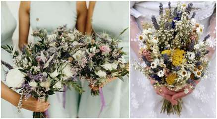 В композициях этого стиля нередко используются пионы, имеющие светлые оттенки, лютики, душистый горошек. Однако подбирать цветы для свадебного букета лучше совместно с профессиональным флористом. Многие полевые цветы не могут долго обходиться без воды, поэтому только опытный специалист сможет посоветовать растения, которые сохранят свой внешний вид в течение всего торжества.