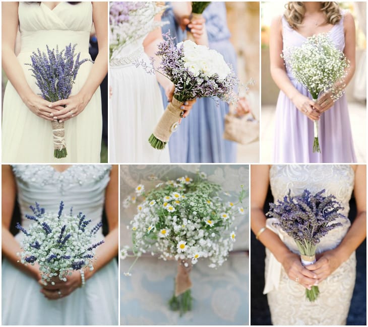 Прованс чаще всего ассоциируется с лавандой. Полученное из нее эфирное масло широко применяется в парфюмерии. Веточки лаванды станут идеальным дополнением для свадебного букета, так как от них исходит восхитительный запах свежести. Однако если это растение не по душе невесте, его легко можно заменить другими представителями флоры. Для создания прованского букета отлично подойдут васильки, ромашки, гортензии, клевер, кустовые розы, колокольчики, фрезии и колосья злаков.