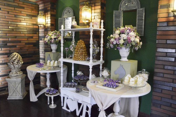 - изысканные и авторские элементы декора – для утонченных мероприятий в стилях «винтаж», «шебби-шик»;