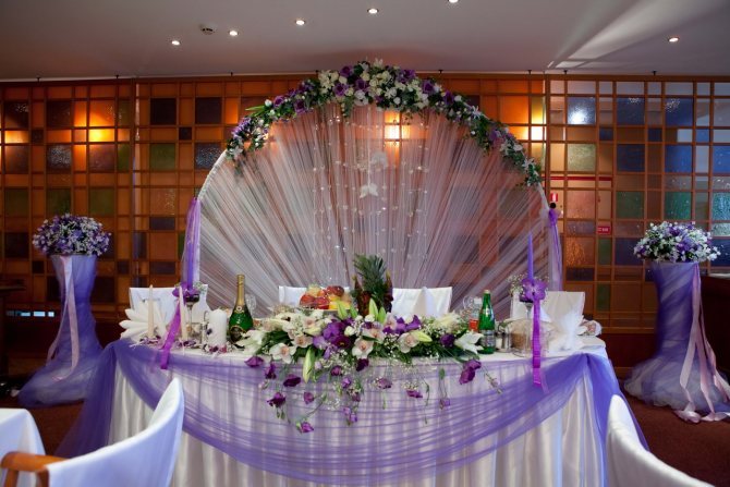 Место регистрации – это простор для фантазии. Фиолетовые оттенки великолепно вписываются в природный ландшафт, поэтому, если вы решили делать выездную регистрацию, то лучше всего проводить её на природе.