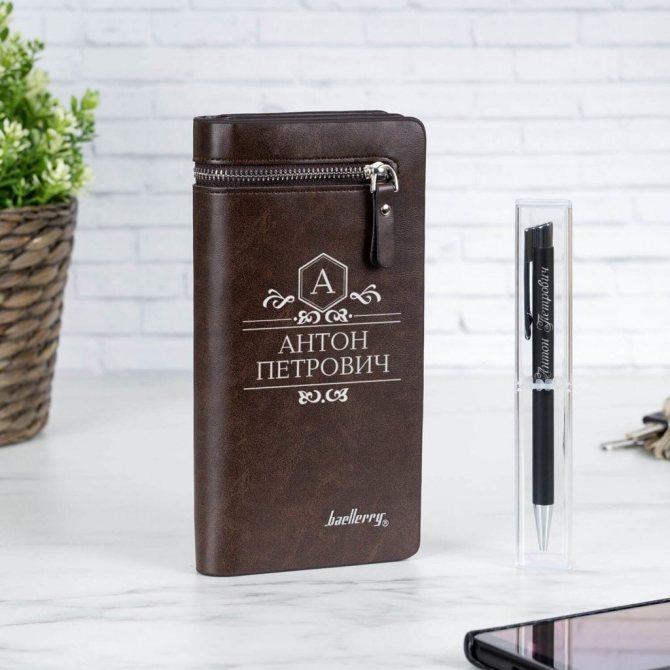 Кожаный портмоне с индивидуальной гравировкой + ручка